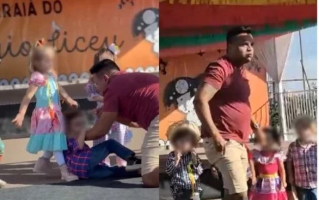 Segundo a ocorrência, o episódio teria acontecido após um suposto desentendimento entre o garoto e o filho do agressor, identificado como Douglas Parisio. Ele invadiu o palco, onde as crianças de 3 e 4 anos se apresentavam, e derrubou o menino no chão, segurando-o pelo pescoço.